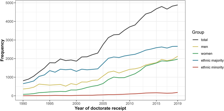 Women and ethnic minorities underpopulate influential academic positions, even though these groups are increasingly represented at the doctorate level. Does this imply that gender and ethnic gaps in academic careers are closing? Prior studies on gender inequality in academia predominantly focus on single academic fields or restricted time periods. Longitudinal descriptions of ethnic inequality are even more rare. Using a novel data set of a nearly complete population of doctorates (N = 95,130) from Dutch universities across all academic fields between 1990 and 2021, and their publications, we extend descriptions on gender and ethnic inequality in academic publication careers in the Netherlands. Furthermore, we assess trends in inequality over approximately 30 years without focusing on established academics. We find that while women are as likely as men to start an academic publishing career after obtaining a doctorate, their careers are shorter. Ethnic minority scholars are less likely to start an academic career after their doctorate, and when they do, they stop sooner than ethnic majority researchers. We do not observe a trend towards more equality in academic publishing careers. In conclusion, efforts to increase diversity in Dutch academia have not yet paid off, and gender and ethnic parity are likely not just a matter of time. Together with the paper we constructed a detailed replication repository/website. Long live Open Science!